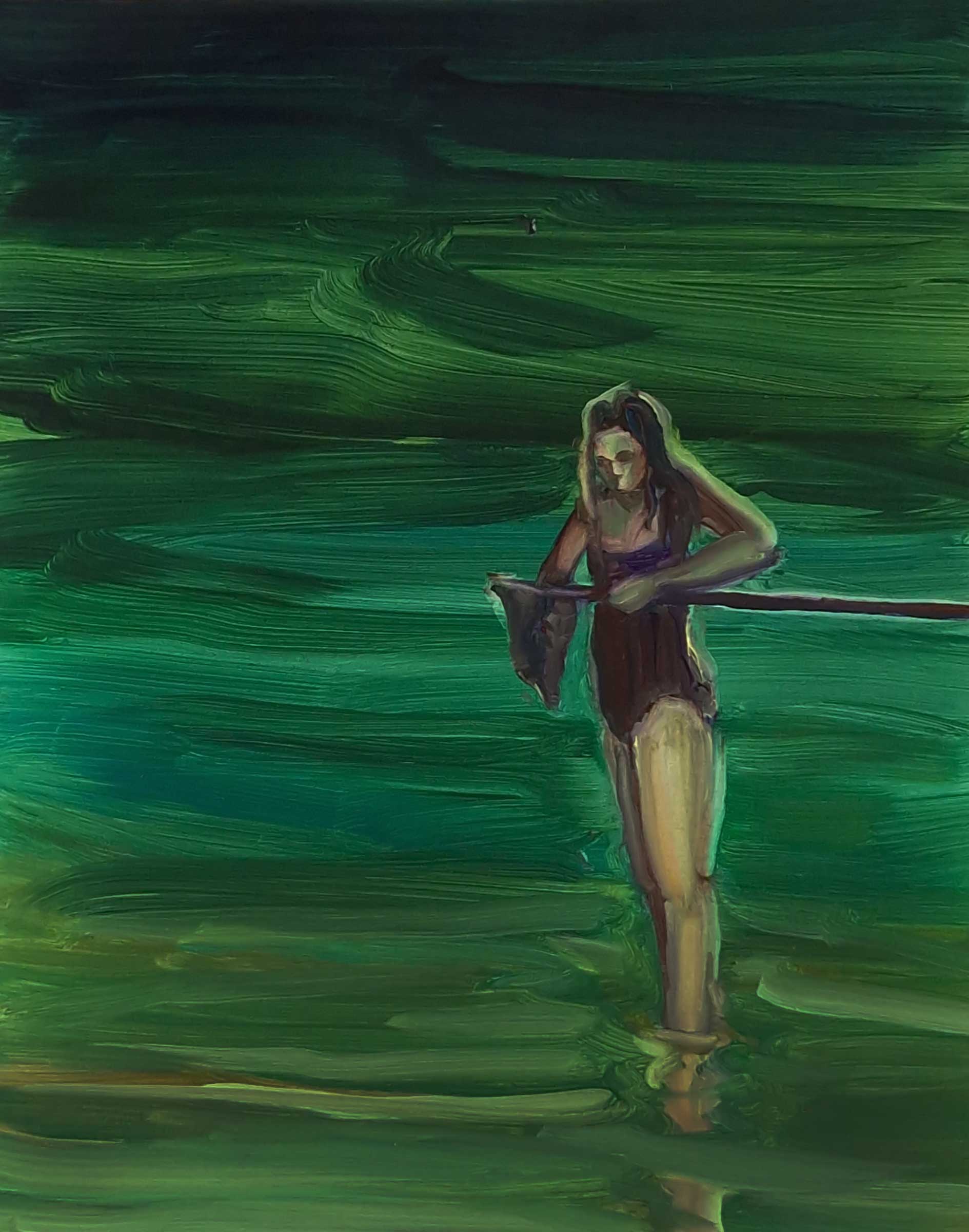 Dark Water - Wading, 30 x 24 cm, oil on paper, 2025