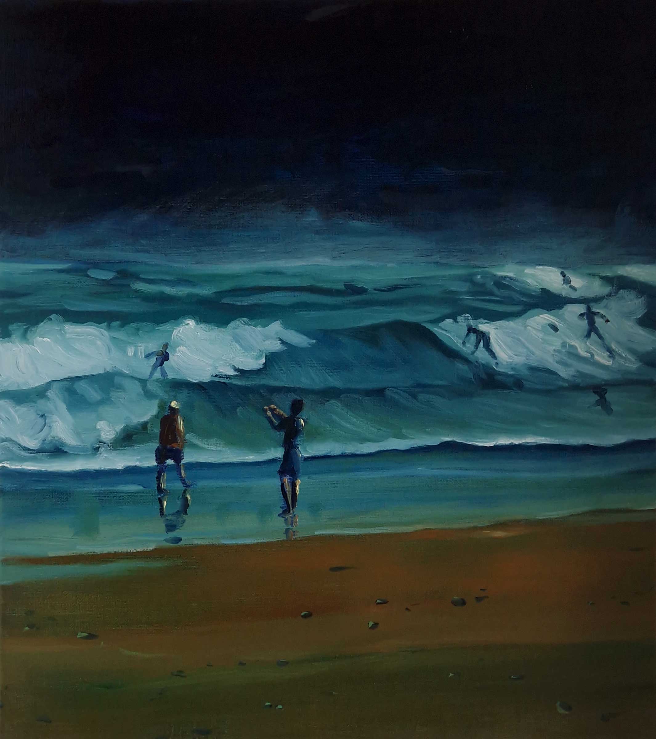 Night Swim - Lights, 45 x 40 cm, oil on canvas, 2025