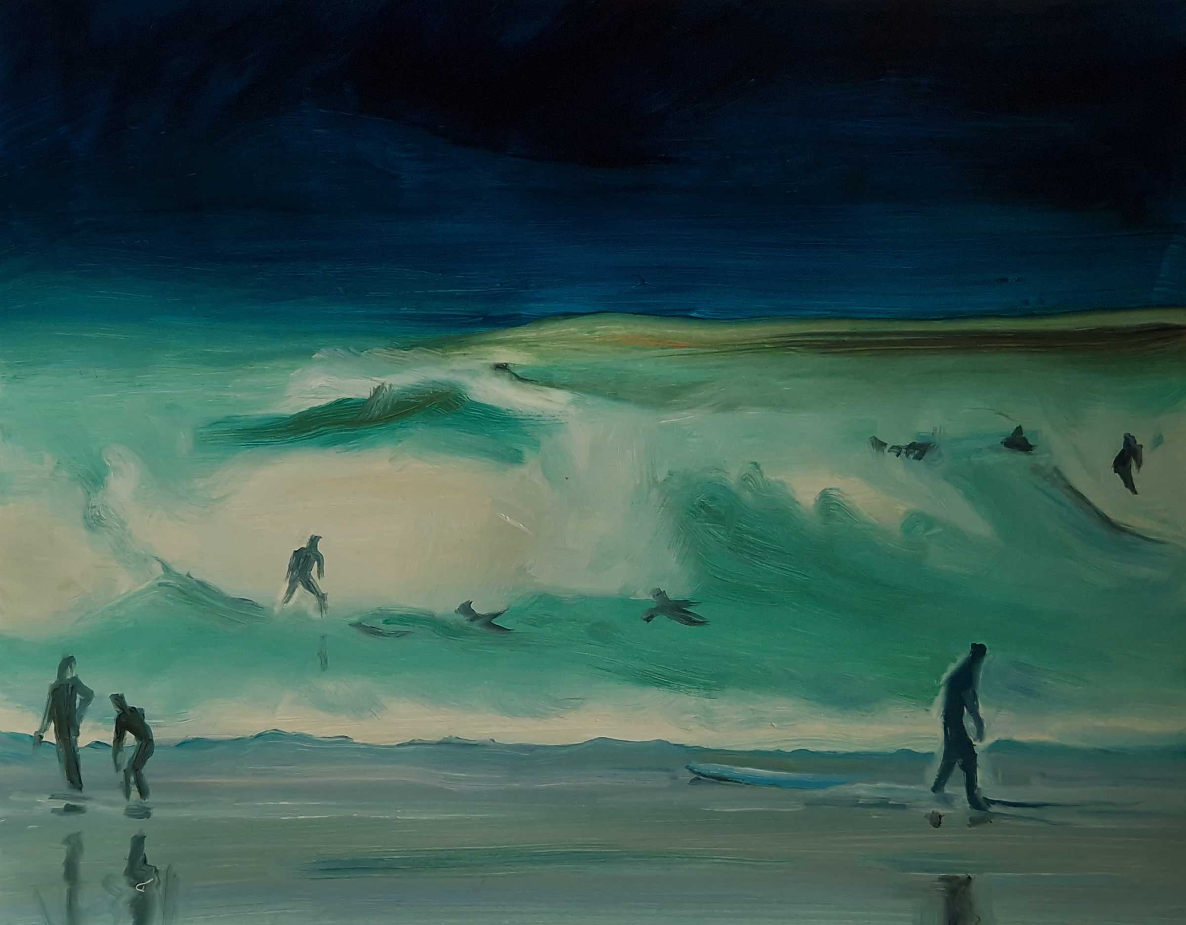 Sea - Dark Sky, gouache, pastel, chalk on paper, 60 x 48 cm, 2021